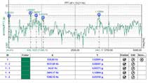 通常每种分析都始于峰值搜索,轻松点击就可以频谱中的峰值,并显示于指针列表当中,可以快速