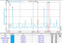 轴承故障分析,得益于频谱中自动标记的帮助,可以轻松识别轴承的故障频率,其中保持架,滚动部件,内外垫圈的